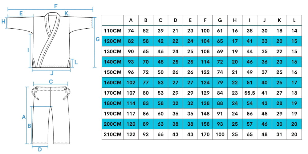 UWAGA: Na osoby o wzroście faktycznym 160-169cm zazwyczaj dobre są kimona BELTOR w rozmiarze 160cm. Analogicznie - na osoby o wzroście faktycznym 170-179cm dobre będzie kimono w rozmiarze 170cm. Na osoby o wzroście 180-189 odpowiednie będzie kimono 180cm itd. Kimona nieznacznie kurczą się w praniu (ok. 3-4cm długości).