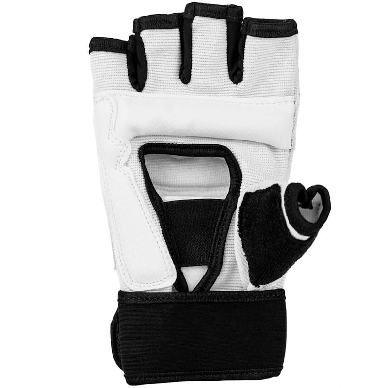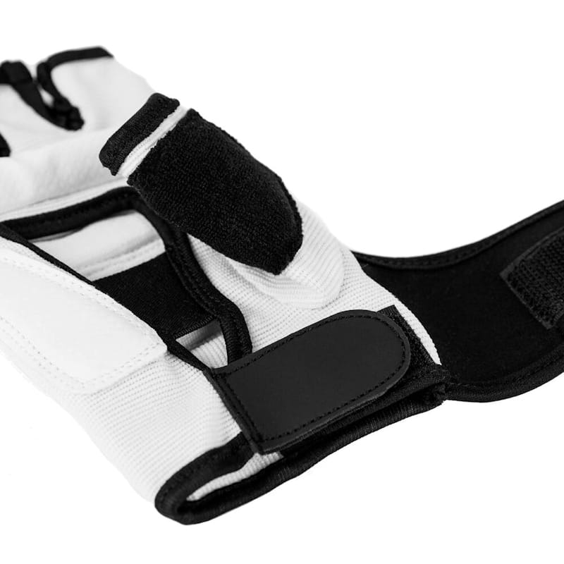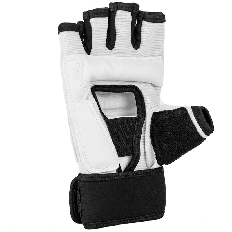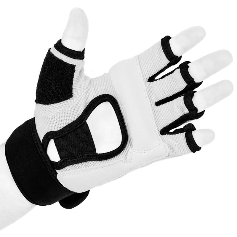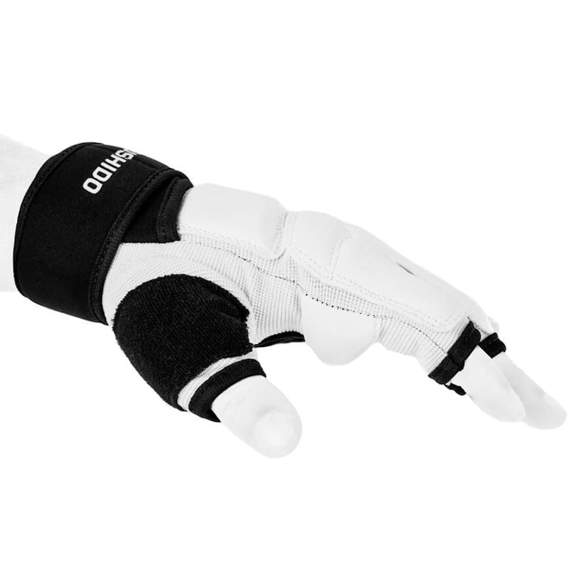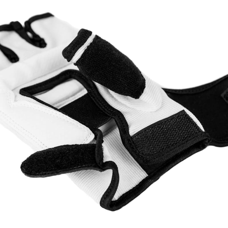 Lekkie rękawice dostosowane do Karate Kyokushin i Teakwondo WTF dla dzieci i dorosłych. Wykonane z elastycznej tkaniny i skaju, zapinane na długi rzep dla dobrego usztywnienia nadgarstka i zabezpieczenia go przed kontuzjami. Na kciuku frotka do wycierania potu.