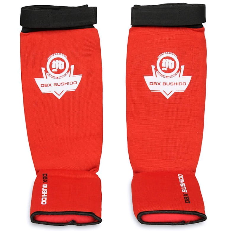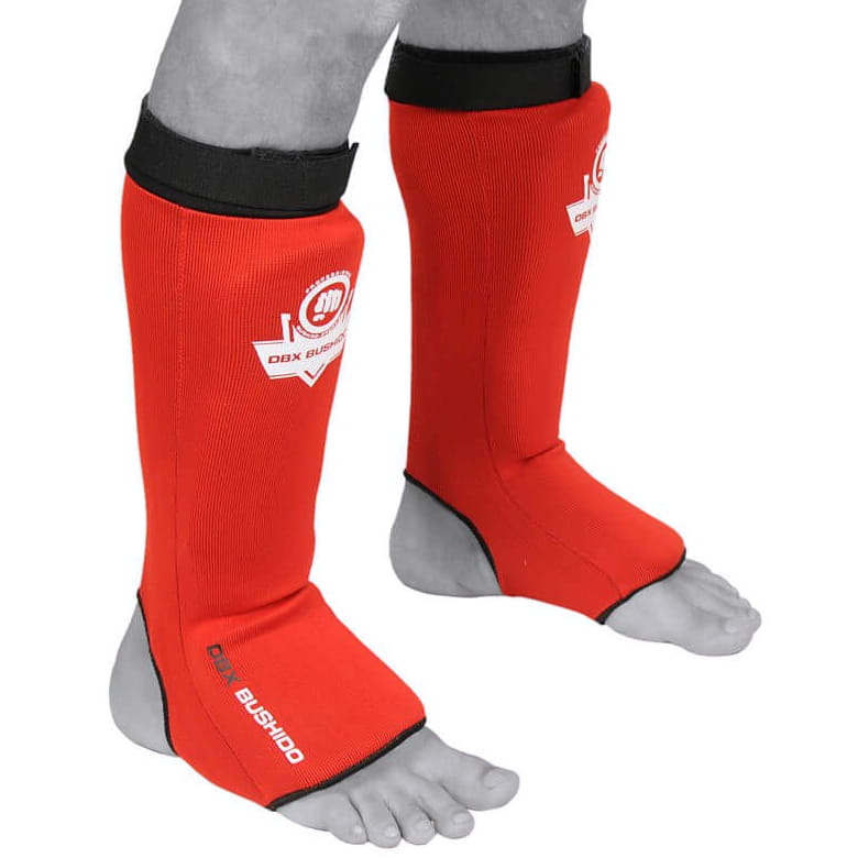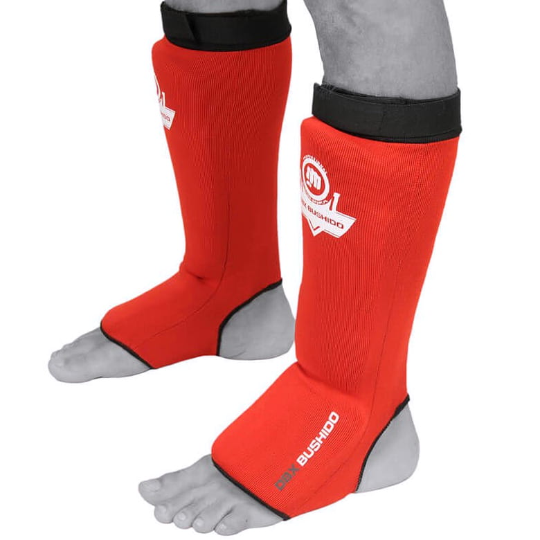 BUSHIDO Ochraniacze Piszczeli i Stopy Elastyczne z Rzepem Czerwone