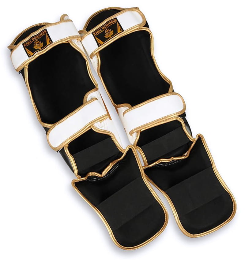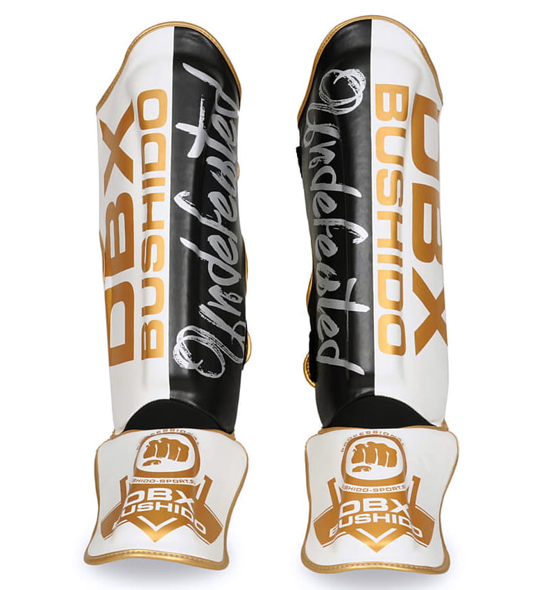 Ochraniacze piszczeli BUSHIDO UNDEFEATED wykonano ze wzmocnionej skóry syntetycznej. Wypełnienie stanowi specjalistyczna pianka o wysokiej gęstości dzięki czemu ochraniacze są lekkie, ale jednocześnie doskonale absorbują uderzenia zapewniając komfort i bezpieczeństwo podczas treningu. Zastosowane wypełnienie jest odporne na zbijanie się i odkształcenia dzięki czemu ochraniacze zachowują swoje właściwości nawet po wielu latach ich użytkowania.