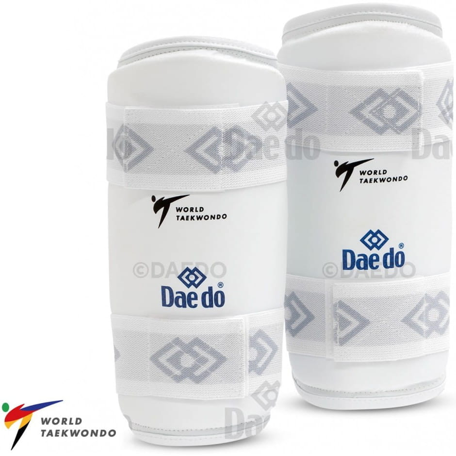Ochraniacze na przedramię DAEDO są bardzo lekkie i dobrze przylegające do ręki. Wykonano je z syntetycznego materiału skóropodobnego w kolorze białym. Ochraniacze zostały wypełnione dobrze amortyzującą pianką o grubości 1,2 cm. Zapinane są na dwie gumy z rzepem. Polecane do taekwondo olimpijskiego, karate, krav magi i samoobrony.