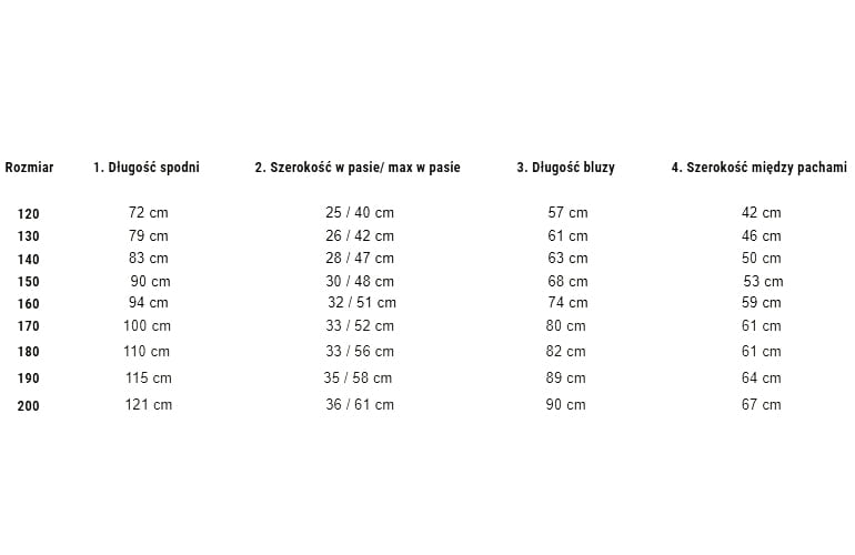 W bluzie zostały użyte kliny w celu większej swobody ruchów. Szerokie i komfortowe spodnie. Krok został obniżony w celu większej wygody.