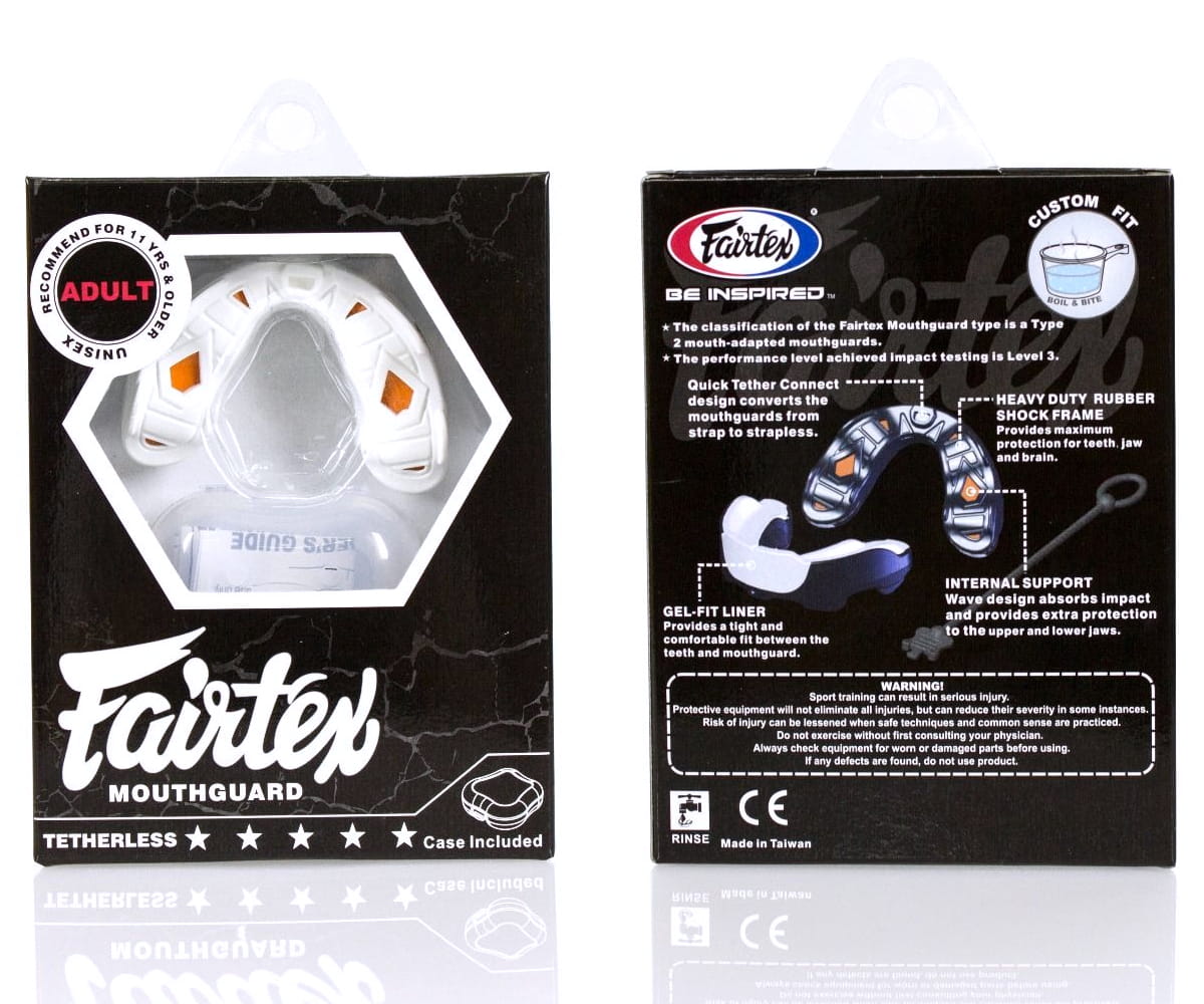 Ochraniacz szczęki FAIRTEX MG3 to profesjonalna, trzywarstwowa osłona na zęby. Mocna warstwa zewnętrzna z gumy ze specjalnym profilem fali dla lepszego tłumienia wstrząsów. Wewnętrzna warstwa żelowa, pochłaniająca energię uderzenia i zapewniająca bardzo dobre dopasowanie. Wierzchnia warstwa z wysokiej jakości elastomeru termoplastycznego. Do formowania w prosty sposób, zgodnie z załączoną instrukcją.