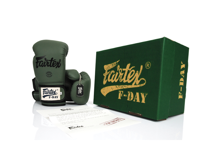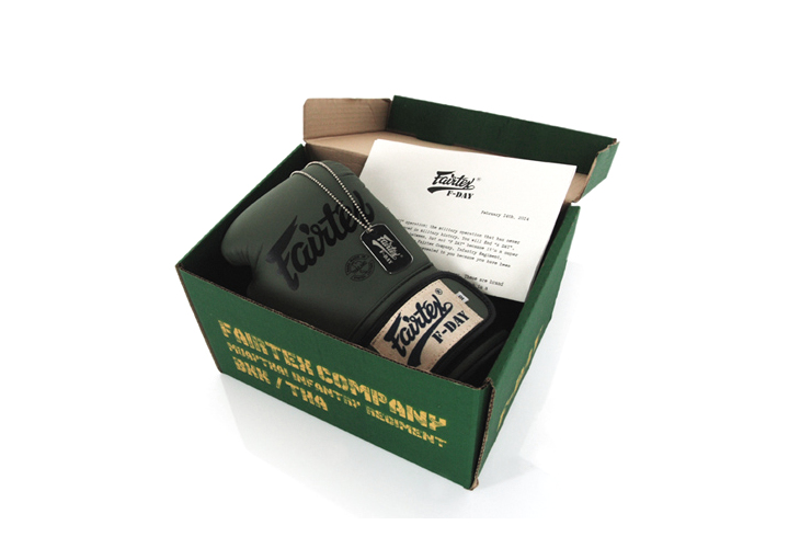 W zestawie specjalne, ograniczone tylko do tej edycji pudełko tekturowe. Jest to model atrakcyjny dla osób lubiących sprzęt stylizowany militarnie: w zestawie z pudełkiem załączono specjalny list prosto z siedziby firmy Fairtex opisujący operację F-Day, a także metalowy nieśmiertelnik na łańcuszku z firmowym logiem produktu.