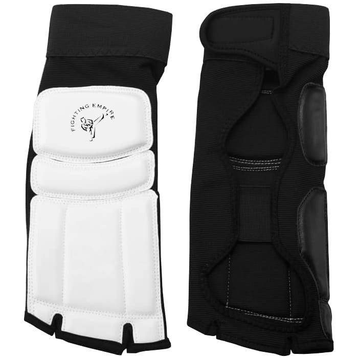 Ochraniacz śródstopia firmy FIGHTING EMPIRE. Zgodny z wymaganiami federacji taekwondo Olimpijskiego (WORLD TAEKWONDO, dawniej WTF). Wykonany z tworzywa syntetycznego i z materiału elastycznego, anatomiczne dopasowany do stopy. Zapięcie wokół kostki na rzep. Produkt z przeznaczeniem tylko i wyłącznie do użytku na macie.