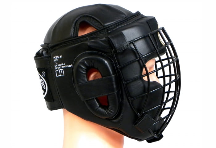 Kask wykonany w całości ze skóry naturalnej (bydlęcej). W pełni zabudowany, z ochroną kości policzkowych, brody i górnej części głowy. Posiada odpinaną kratkę wykonaną z metalu. Zapięcie z tyłu na jeden mocny i szeroki rzep. Bardzo wygodny, nie ogranicza widoczności, duże otwory wokół oczu. Idealny do zawodów i sparingów w różnych dyscyplinach sztuk i sportów walki m.in. w karate, boksie i krav madze. Wewnątrz zastosowano przypominającą zamsz skórę amara, zapobiegającą ślizganiu się kasku na spoconej głowie.