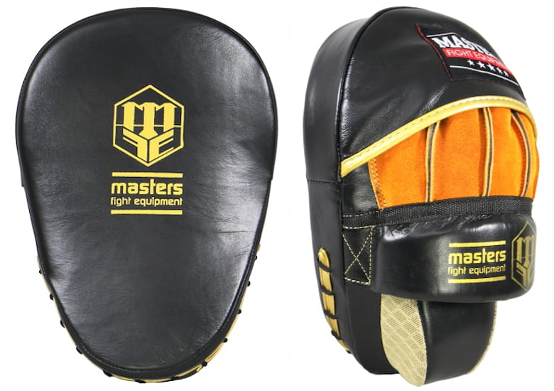 Tarcze – łapy trenera wykonane z wysokiej jakości skóry naturalnej, wypełnione twardym regeneratem. Tarcze bardzo dobrze amortyzują uderzenia co wpływa na poprawę jakości i komfortu treningu. Mocowanie tarcz stanowi rękaw w kształcie rękawiczki z wszytą dodatkową osłoną na palce co umożliwia właściwe i stabilne utrzymanie tarcz. Dodatkowymi zabezpieczeniami są zapięcia na rzep na wysokości nadgarstka oraz palców. Artykuł doskonale sprawdza się podczas treningów uderzeń bokserskich. Profil tarcz szczególnie predysponuje je do treningu ciosów sierpowych i tzw. haków oraz do uczenia walki w tzw. "półdystansie".
