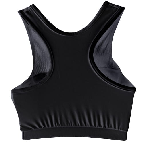 Ochraniacz piersi dla kobiet - czarna oddychająca koszulka, a w niej dwie wyjmowane wkładki wykonane z tworzywa sztucznego. Wkładki posiadają liczne otwory wentylacyjne dla lepszej przewiewności ochraniacza. Koszulkę można łatwo wyprać.
