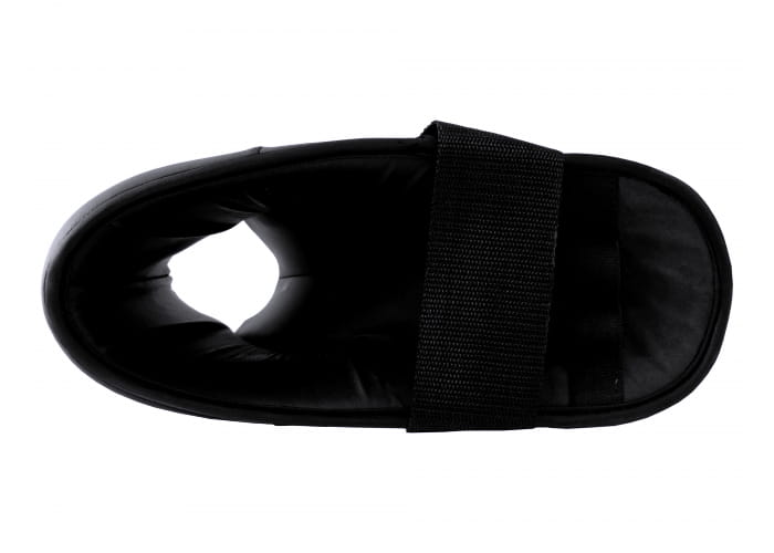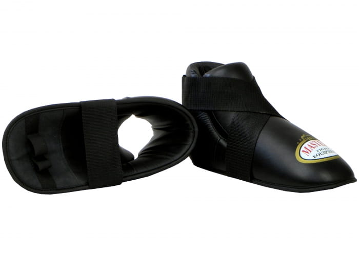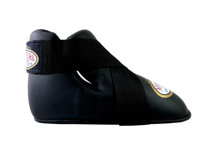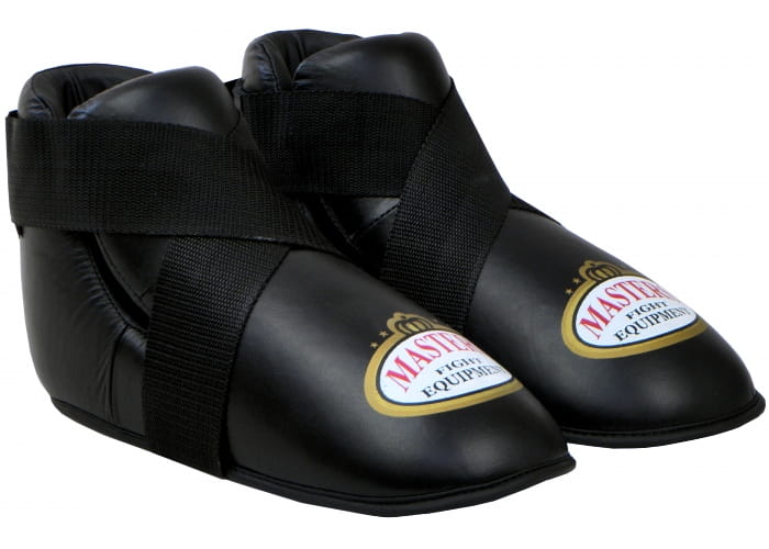 Ochraniacze stóp, wykonane ze skóry syntetycznej, wkład wykonany z pianki poliuretanowej. Mocowane na nodze na parcianą taśmę z rzepem (w porównaniu z taśmami gumowanymi nie wyciąga się i zawsze zachowuje rozmiar). Idealne do treningów kickboxingu oraz taekwondo ITF.