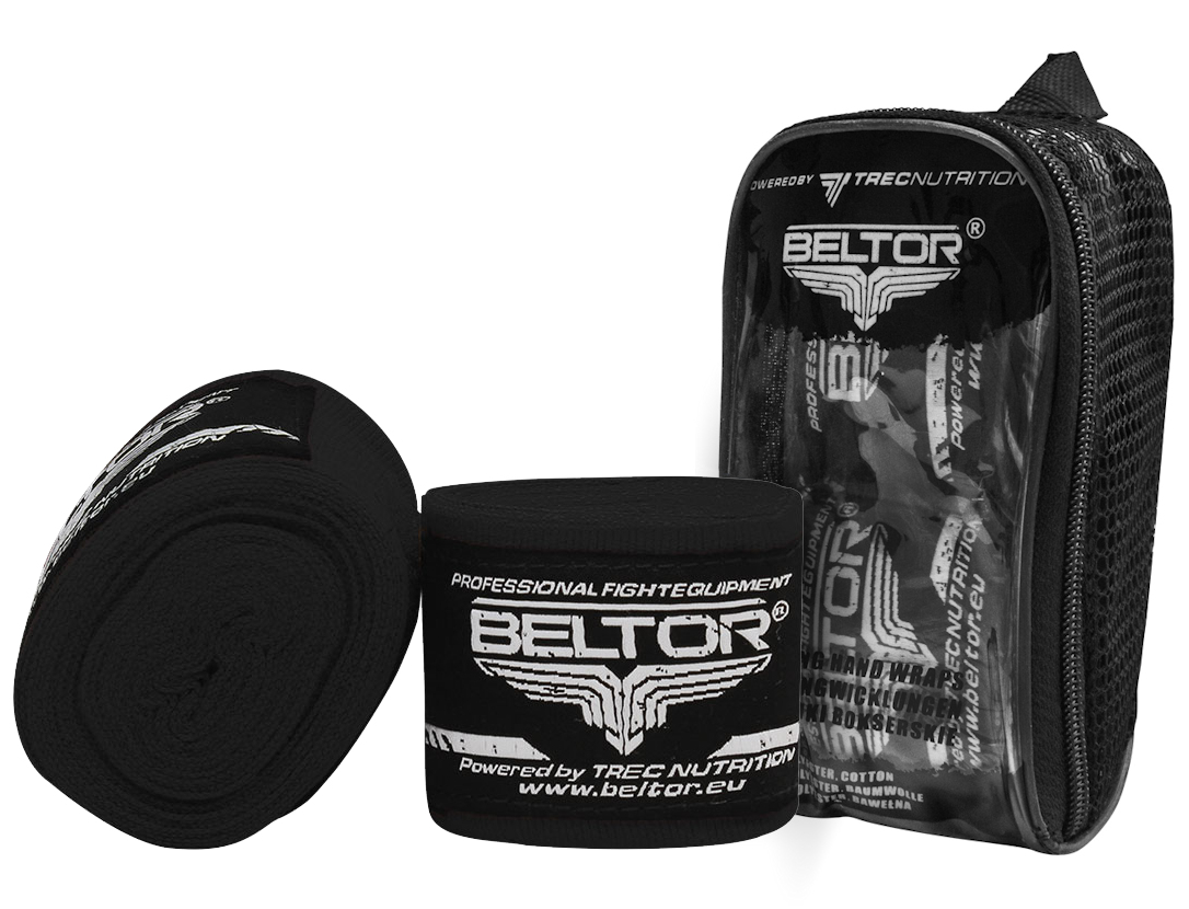 Świetnej jakości bandaże bokserskie marki BELTOR, wykonane w 100% z najlepszej bawełny.