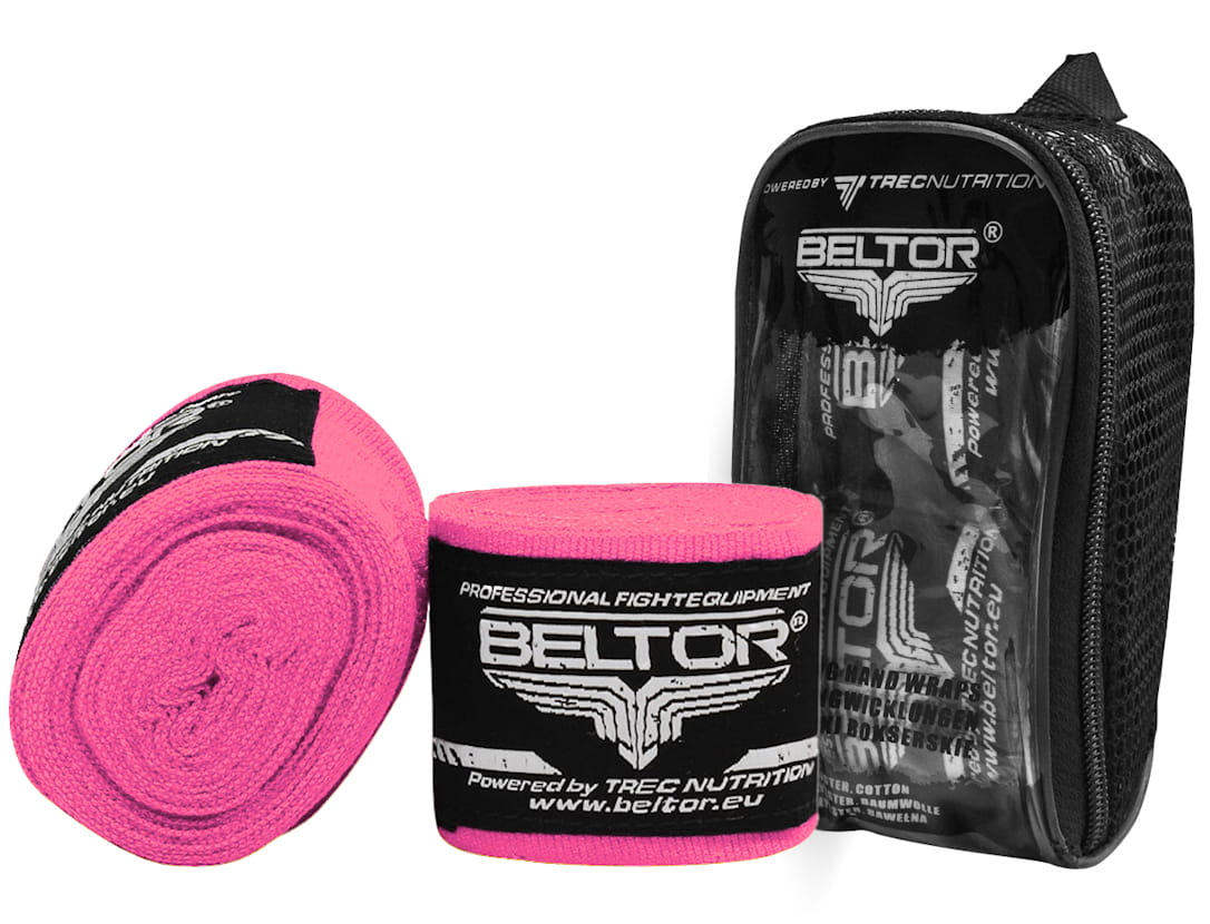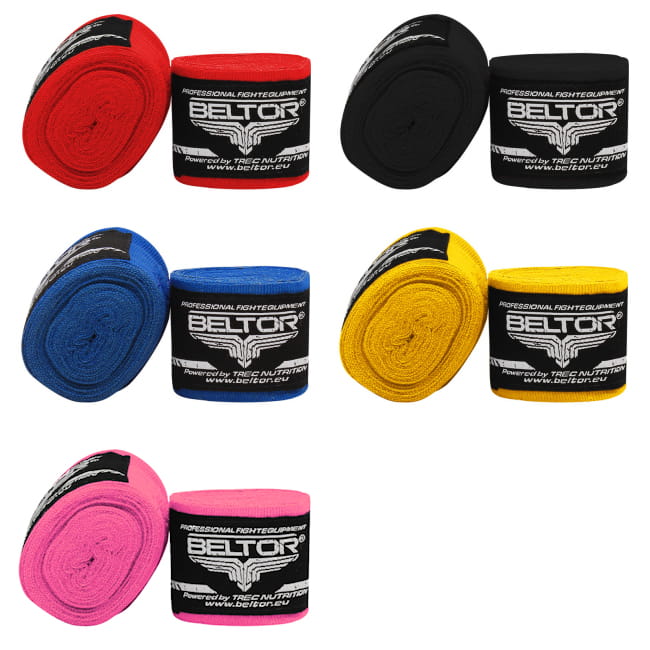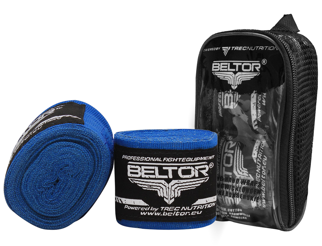 Świetnej jakości elastyczne bandaże bokserskie marki BELTOR, wykonane w z bardzo dobrej jakości mieszanki bawełny i poliestru.