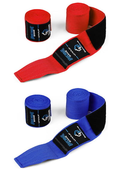 Bandaże bokserskie elastyczne o długości 2,5 metra. Materiał, z którego je wykonano to blend bawełny i poliestru. Zapewnia to dłuższą żywotność i minimalną elastyczność taśmy, gwarantując doskonałe dopasowanie owijek do dłoni.