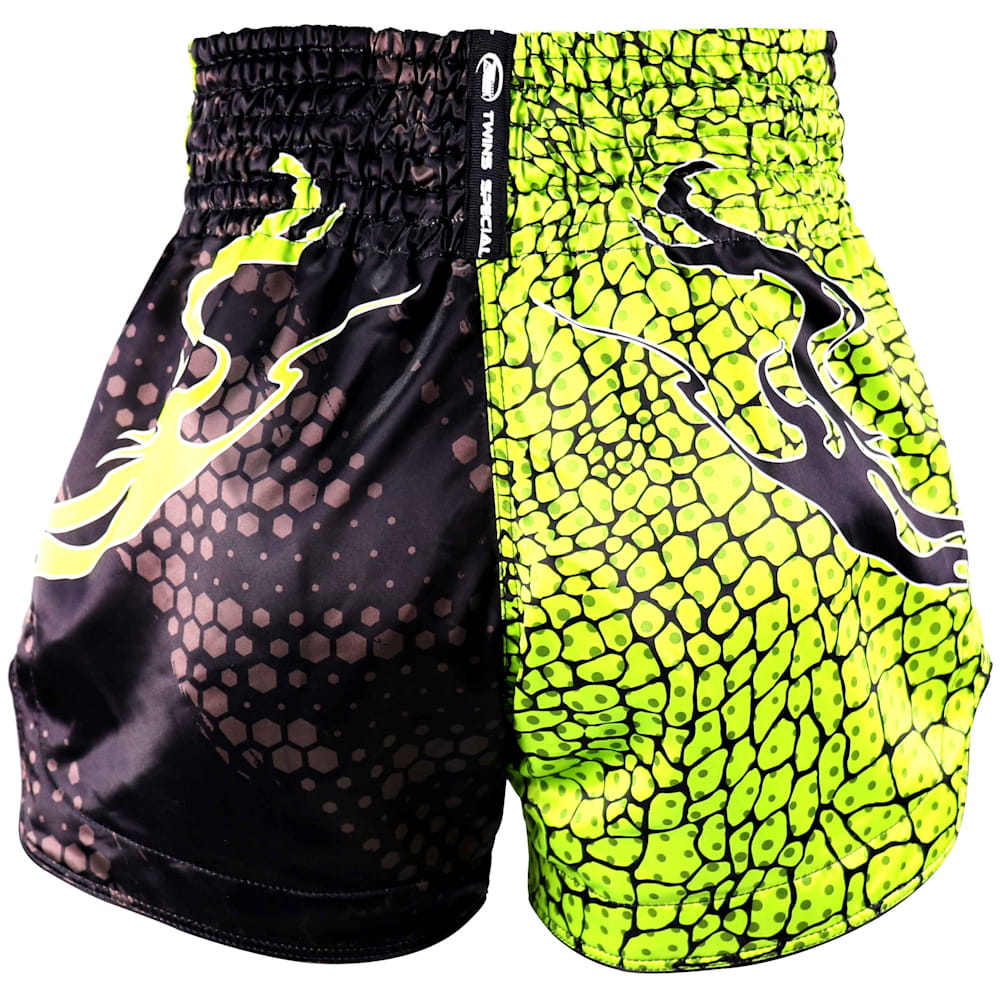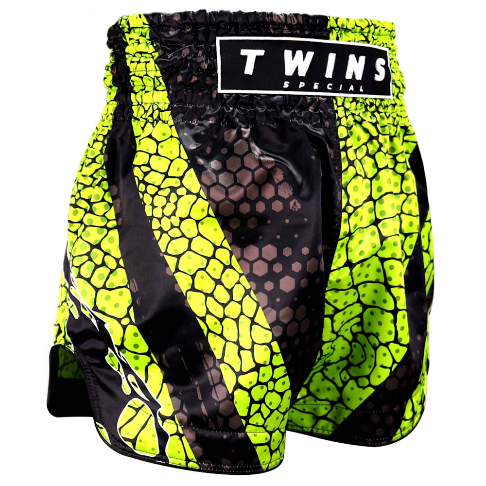 Produkt najwyższej trwałości, wytwarzany przez renomowaną tajską markę TWINS SPECIAL. Doskonałej jakości spodenki Muay Thai firmy TWINS wykonane są w 100% z poliestru, co gwarantuje nie tylko wytrzymałość, ale również higienę. Zastosowany materiał pozwala idealnie odprowadzać powstającą podczas treningu wilgoć. Specjalny, poszerzony krój zapewnia maksymalna wygodę treningową, co jest istotne w sporcie, gdzie kopnięcia i uderzenia kolanami są czymś naturalnym. Tego rodzaju spodenki używane są na całym świecie, zarówno przez profesjonalistów, jak i amatorów boksu tajskiego, a także innych sportów walki.