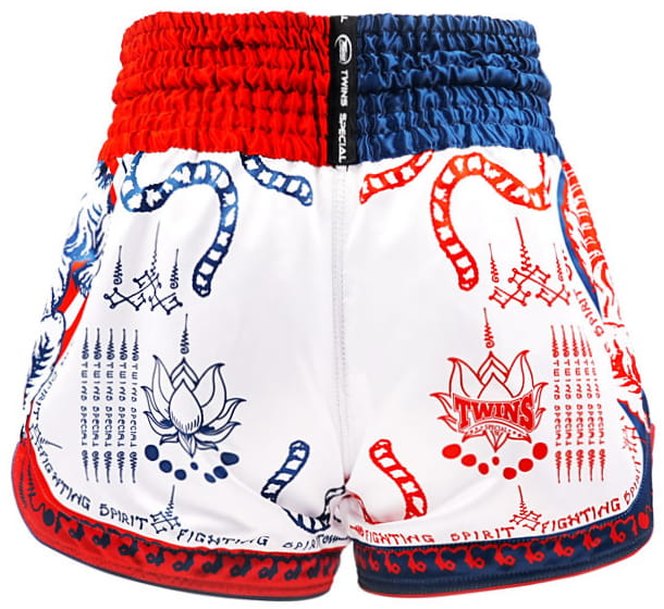 Produkt najwyższej trwałości, wytwarzany przez renomowaną tajską markę TWINS SPECIAL. Doskonałej jakości spodenki Muay Thai firmy TWINS wykonane są w 100% z poliestru, co gwarantuje nie tylko wytrzymałość, ale również higienę. Zastosowany materiał pozwala idealnie odprowadzać powstającą podczas treningu wilgoć. Specjalny, poszerzony krój zapewnia maksymalna wygodę treningową, co jest istotne w sporcie, gdzie kopnięcia i uderzenia kolanami są czymś naturalnym. Tego rodzaju spodenki używane są na całym świecie, zarówno przez profesjonalistów, jak i amatorów boksu tajskiego, a także innych sportów walki.